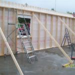 Sedan monteras t.ex träfiberskiva (OSB) och gipsskiva som därmed utgör färdig innerväggsbeklädnad.