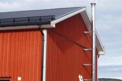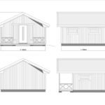 För att säkerställa en tät och hållbar ytterpanel monteras spikläkten (34×70 mm) med täta mellanrum. Som ytterpanel använder vi en stående panel med 22×145 mm som bottenbräda och lockbräda 22x95mm.